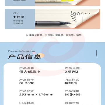 得力(deli)笔记本子螺旋本线圈本 B5/80张 单本装 GLB580
