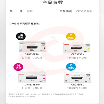 佳能(Canon)硒鼓CRG335 红色大容量可选青色黄色(适用LBP843Cx/LBP841Cdn)