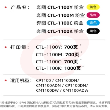 奔图(PANTUM) CTL-1100K/M/C/Y 4色套装 适用CP1100/CP1100DN/CM1100DN/DW/CM1100ADN/ADW