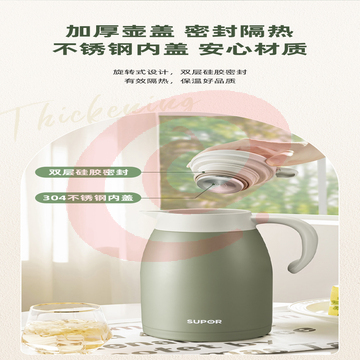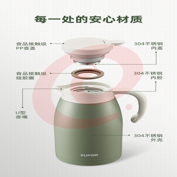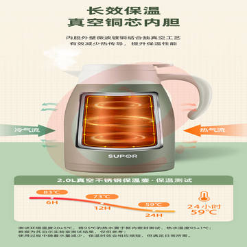 苏泊尔 保温壶 不锈钢热水壶 2L 流光银