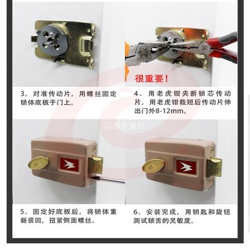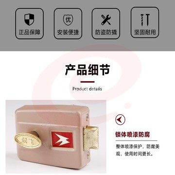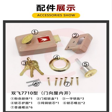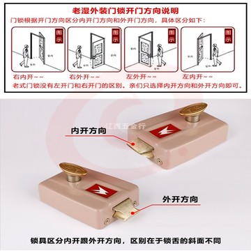 老式门锁 三保险弹子门锁 三保险老式木门防盗内门锁碰锁 方向可选择