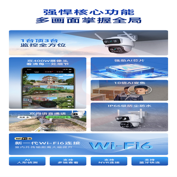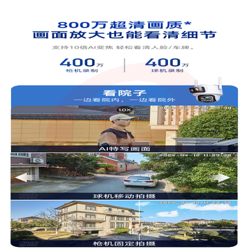 360双摄800万像素室外手机远程防水家用夜视全景变焦监控摄像头
