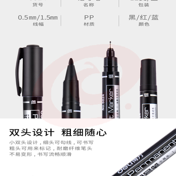 得力6824 小双头记号笔 黑色(12支/盒)