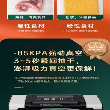 得力(deli)真空封口机双泵抽气家用商用全自动真空包装机加宽双封口干湿两用 14891
