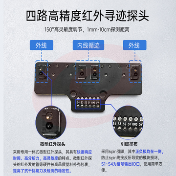 幻尔4路巡线传感器+杜邦线 红外寻迹避障四路识别机器人智能小车循迹模块
