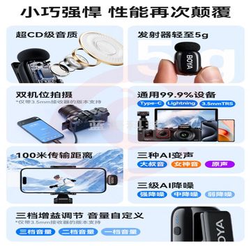 BOYA mini博雅迷你无线领夹麦克风收音麦 手机直播户外采访vlog短视频收音小蜜蜂降噪麦克风 Type-C版