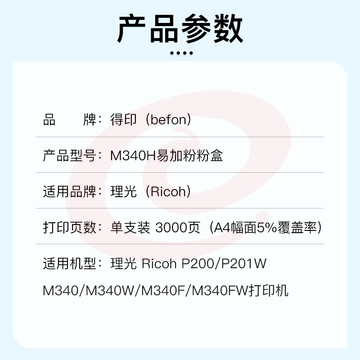 得印(befon) M340墨 可加粉3000页适用理光Ricoh p200/p201w M340FW M340F/P M340W/M多功能一体机