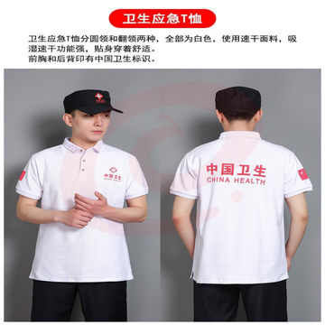 全套中国卫生应急服装 白色-----短袖翻领T恤