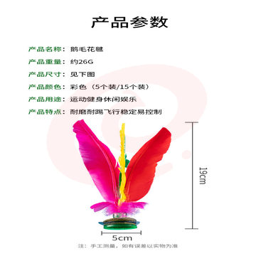 杜威克 毽子大号鹅毛羽毛彩色比赛毽球牛筋底花键儿童毽子5个装