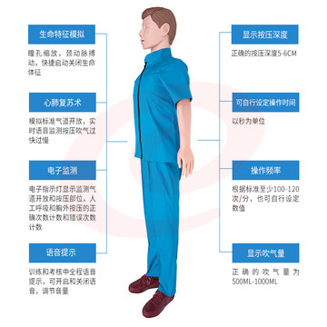 全身心肺复苏模拟人人工呼吸心脏复苏训练教学考核标配三模式可调