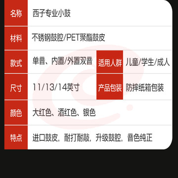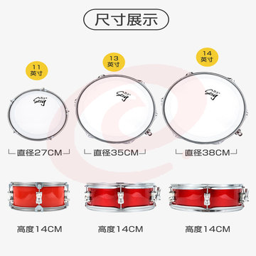 西子小军鼓鼓号队军乐队鼓11寸小鼓乐器儿童学生成人行进军鼓 普通亮红11英寸单音(直径27*高度14)【适合幼儿园】