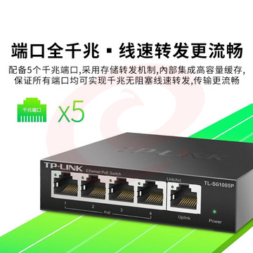 普联(TP-LINK)5口千兆PoE交换机 4口PoE非网管交换机 监控网络网线分线器 企业级交换器 分流器 TL-SG1005P